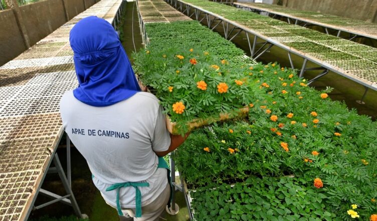 No Viveiro Municipal, as flores são cultivadas com carinho pelas mãos cuidadosas dos cerca de 30 alunos da Associação de Pais e Amigos dos Excepcionais (Apae), que aprendem jardinagem por meio de parceria com a Prefeitura.